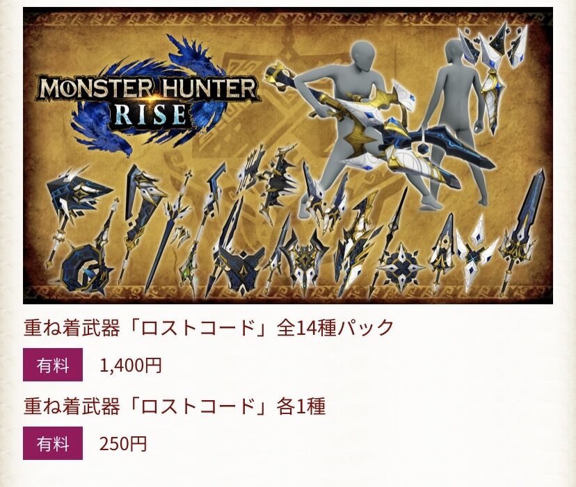 値段出してるけど例の武器重ね着1個250円